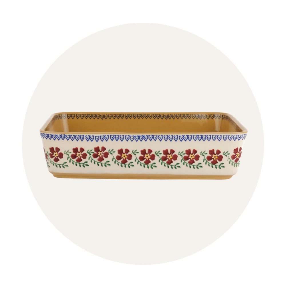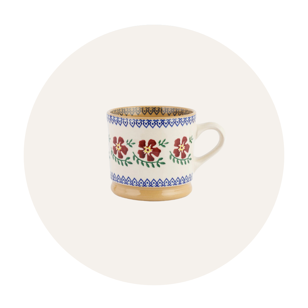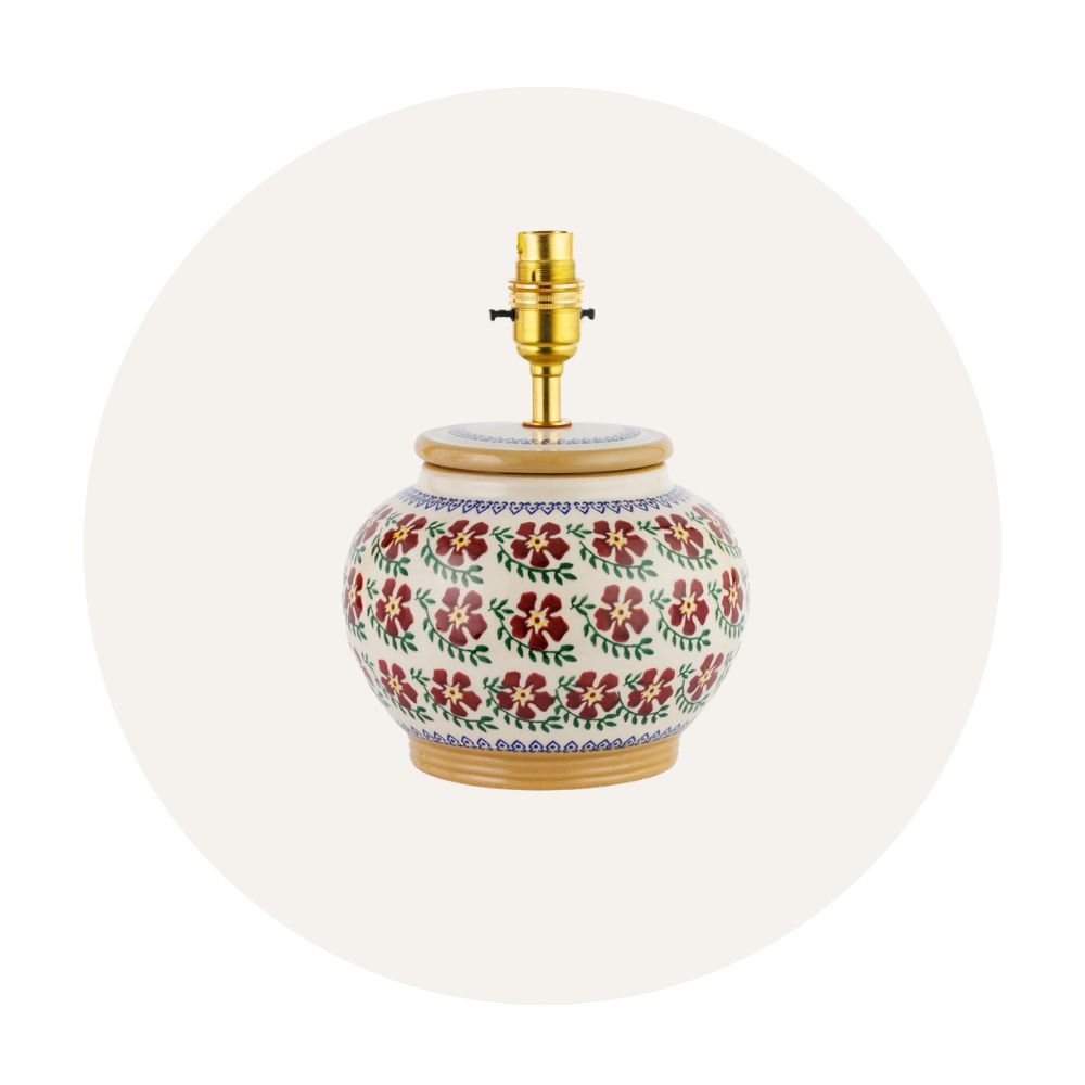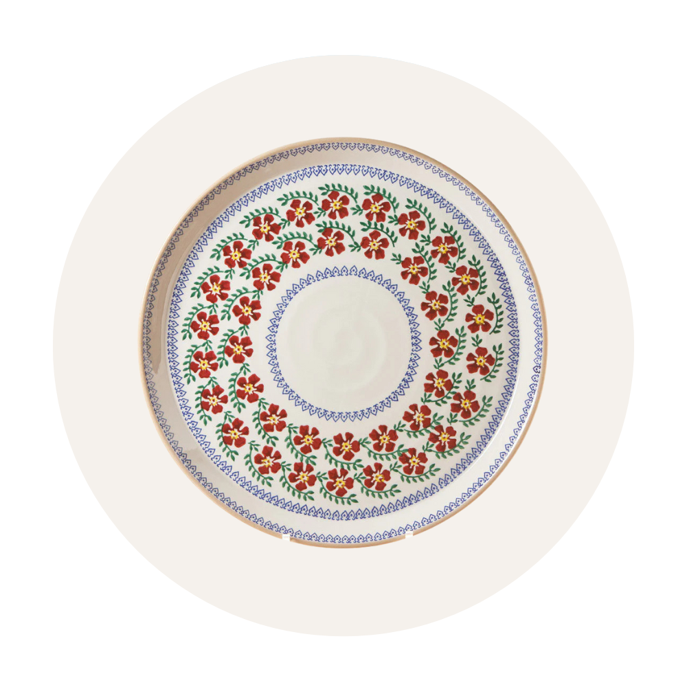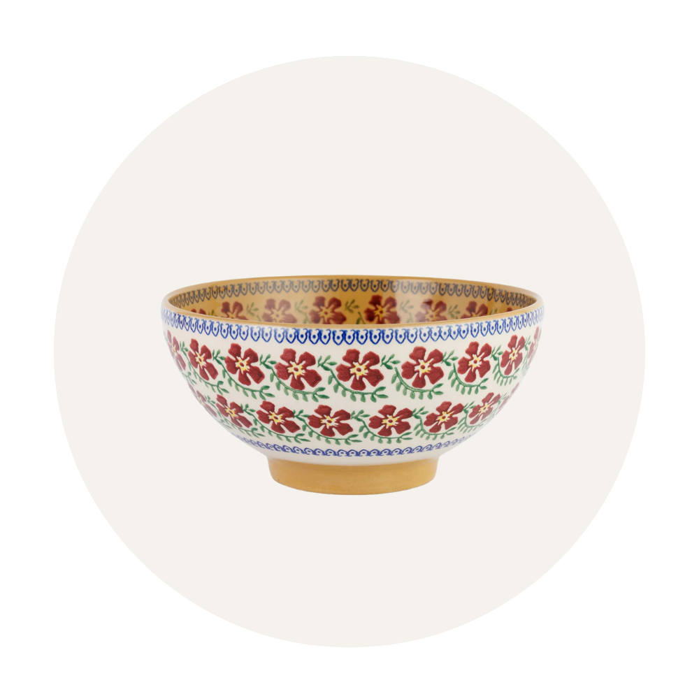 The Nicholas Mosse Old Rose pattern is our all-time, bestselling classic. We've made it for the last 25 years and hope to keep on making it for another 25. Customers often start with a piece of Old Rose and then graduate into mixing it with our other red patterns.